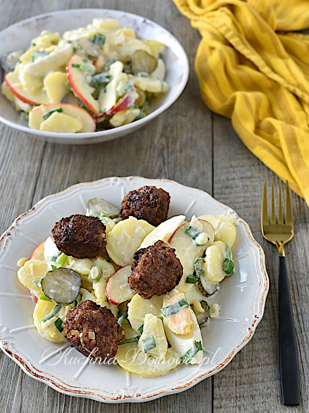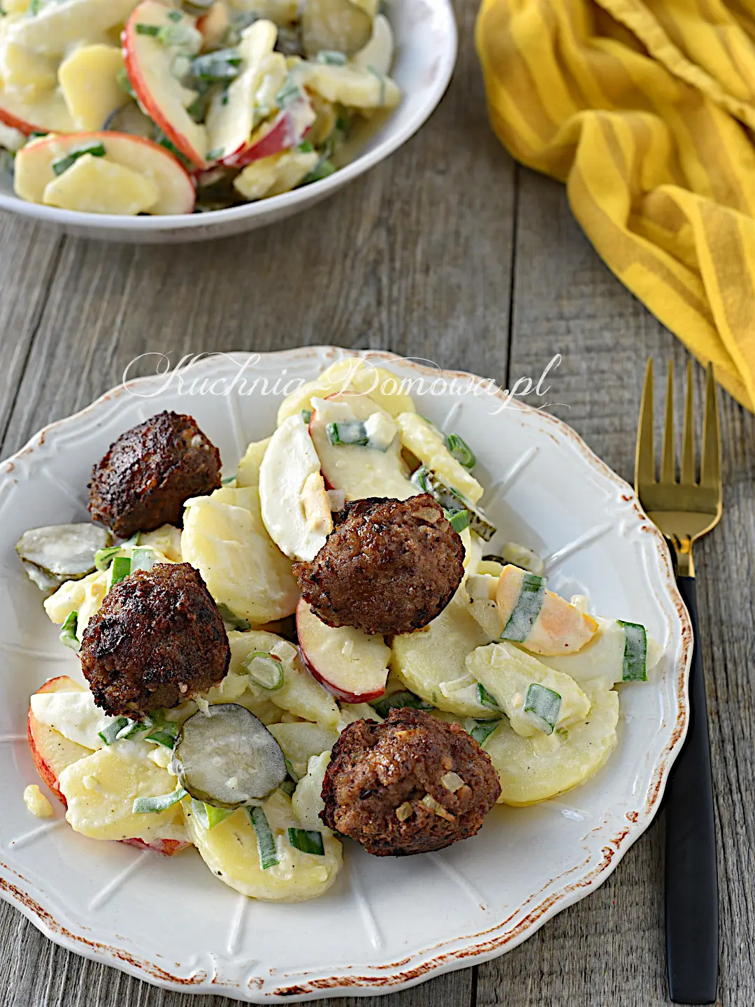 Sałatka ziemniaczana z kulkami mięsnymi